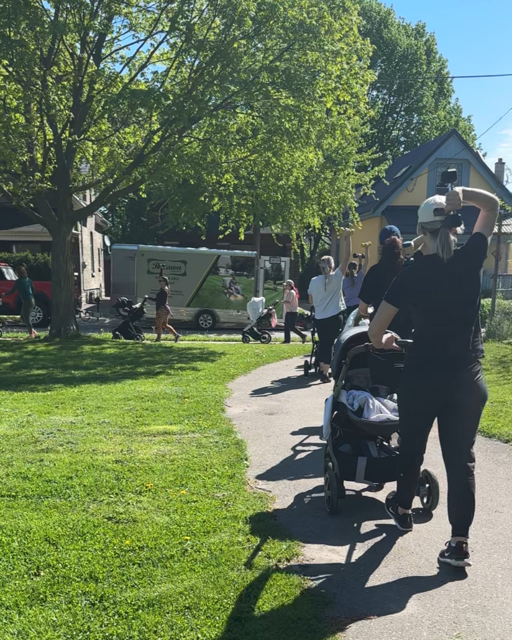 This outdoor program is a great option for moms with busy babies who enjoy the stroller! Moving around OEV, this program is a low impact option for moms getting back to Strength and cardio movements.