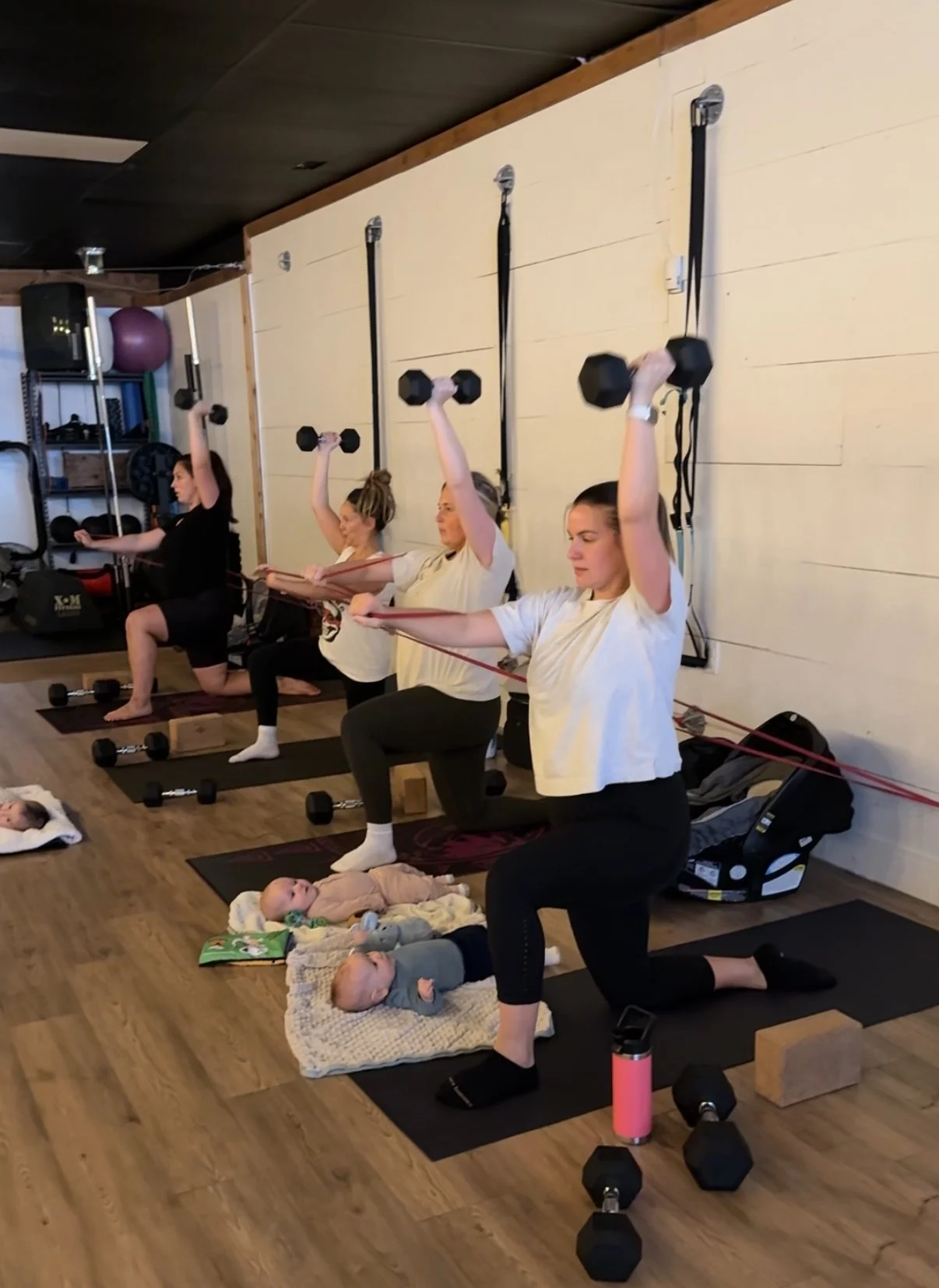 For moms with babies 12+ months OR with more than one child. Bring all your kiddos and get a great workout in. There is supervised play for the kids and a coach for mom. Focus on your strength and prioritize YOU!
